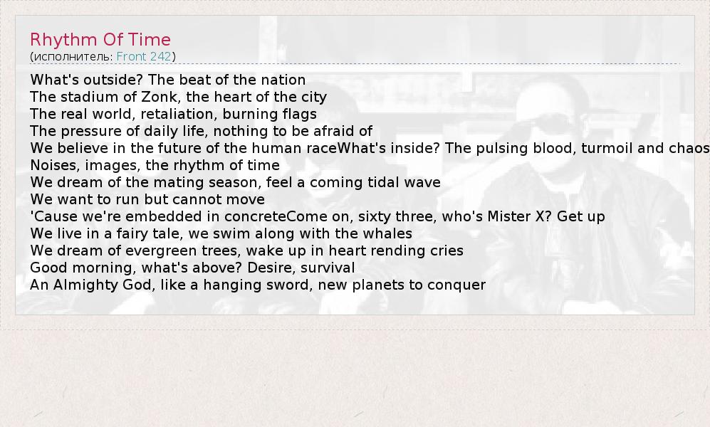 А как ты думаешь, о чем песня "Rhythm Of Time" ?