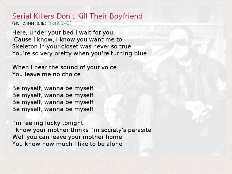 ГлавнаяИсполнителиFront 242Serial Killers Don't Kill Their Boyfriend