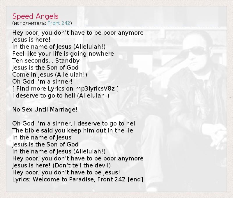 А как ты думаешь, о чем песня "Speed Angels" ?