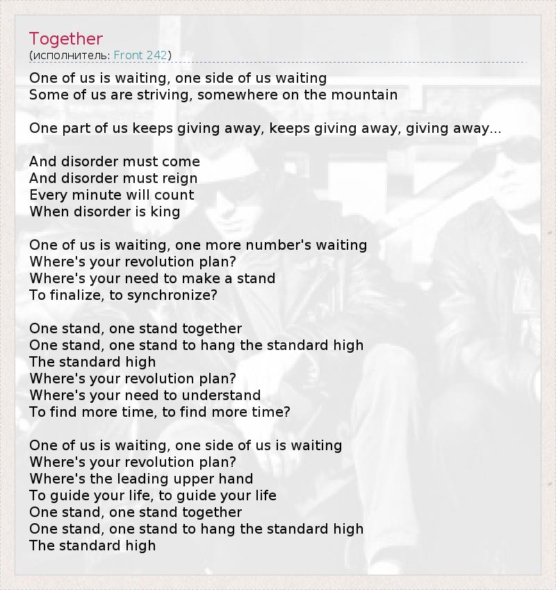 А как ты думаешь, о чем песня "Together" ?