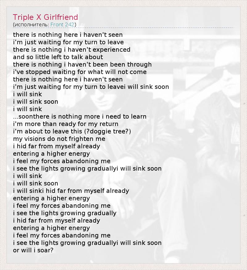 А как ты думаешь, о чем песня "Triple X Girlfriend" ?