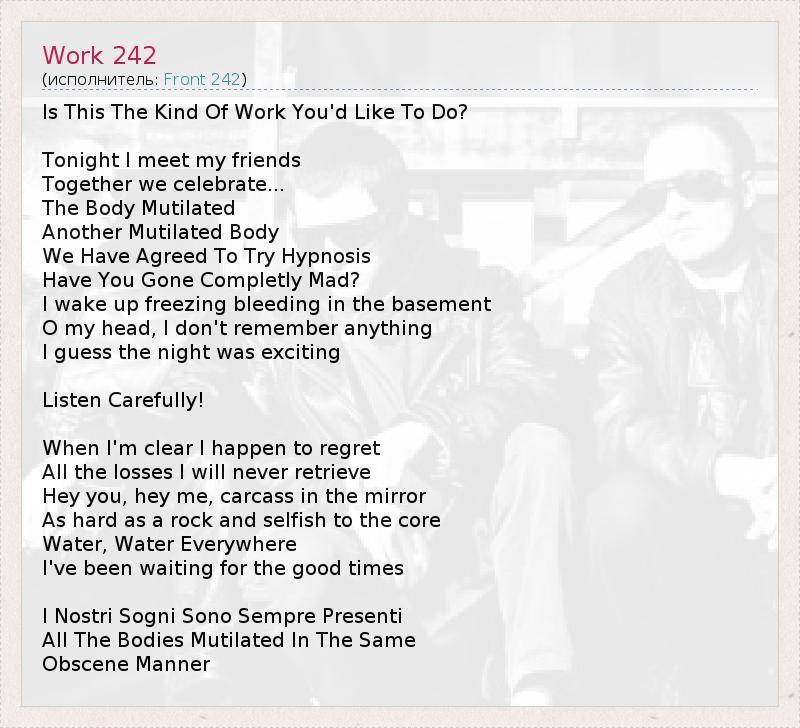 Это интересно:Бельгийская команда "Front 242" является одним из пионеров жанра EBM. Ее история началась в 1981 году, когда на почве общих интересов в электронной музыке и графическом дизайне Даниэль Брессанутти и Дирк Берген образовали дуэт "Prothese". Название вскоре было заменено на "Front 242", и к концу года под этим именем вышел сингл "Principles".Примерно в то же время появился еще один дуэт,... продолжение