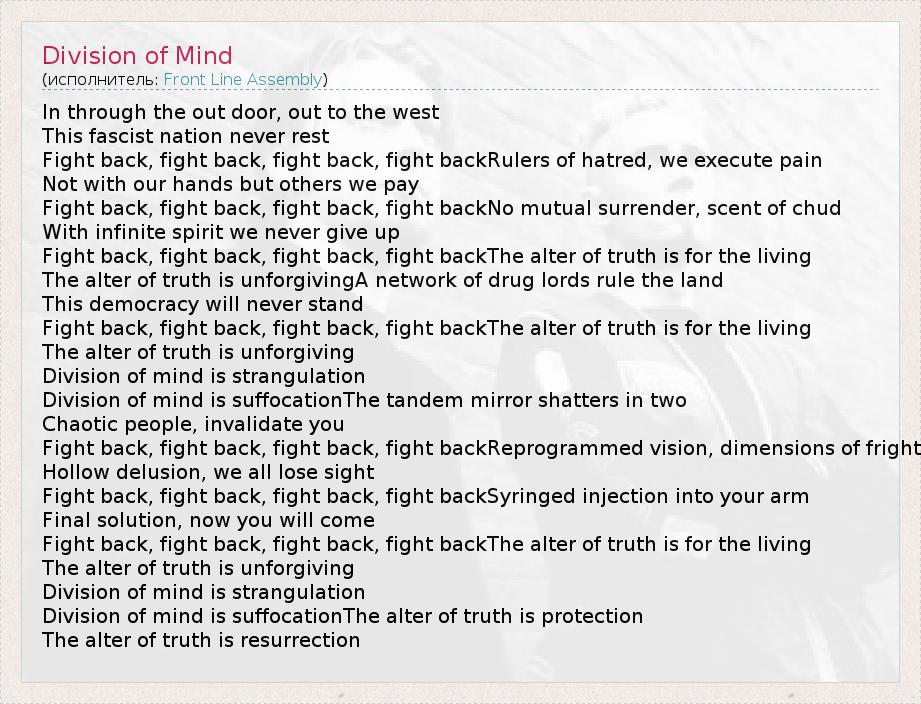 А как ты думаешь, о чем песня "Division of Mind" ?