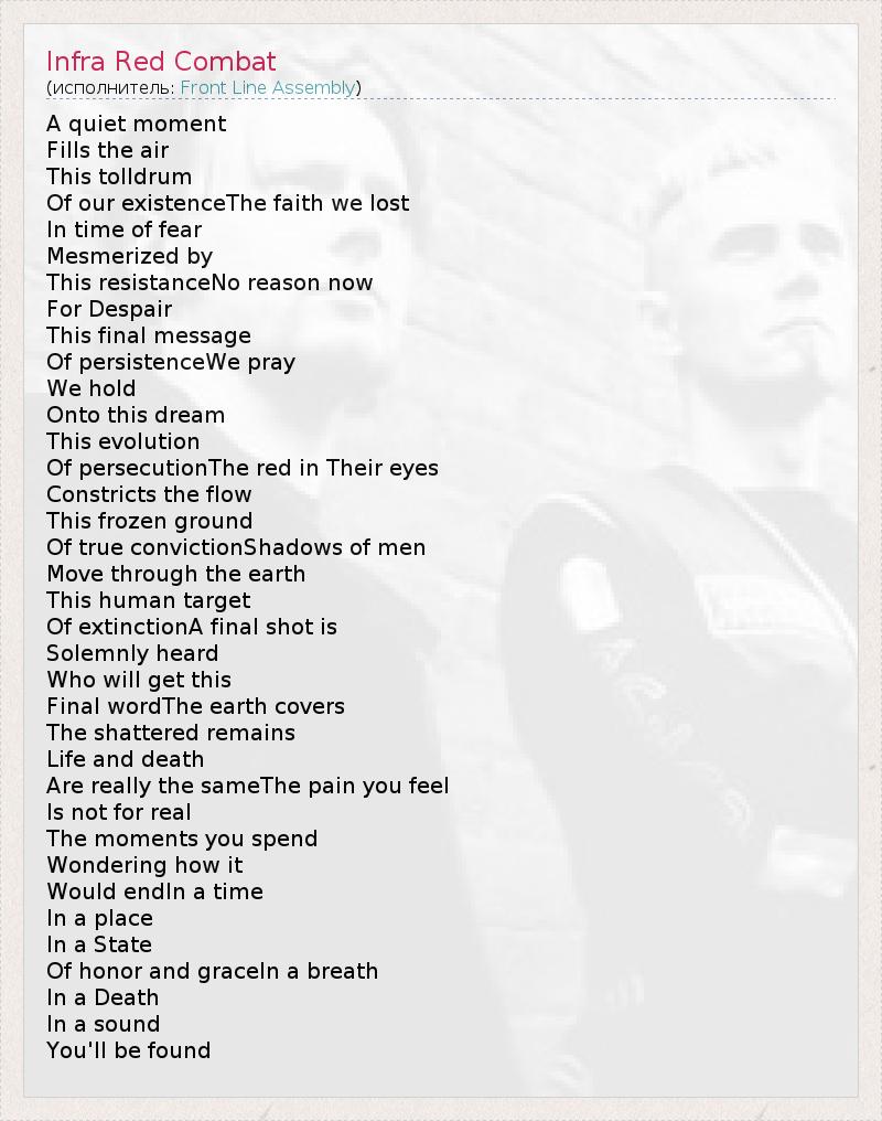 А как ты думаешь, о чем песня "Infra Red Combat" ?