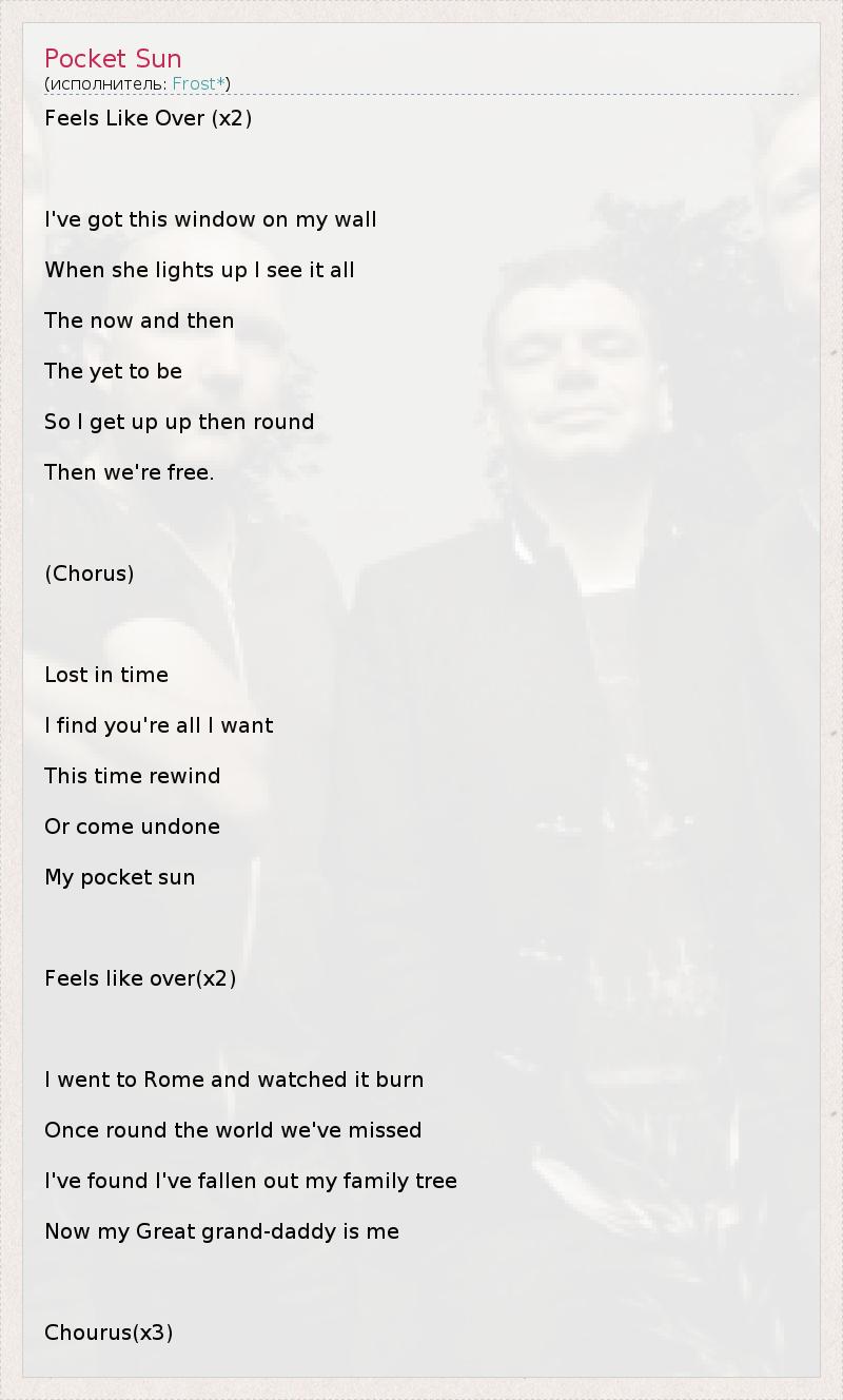 А как ты думаешь, о чем песня "Pocket Sun" ?