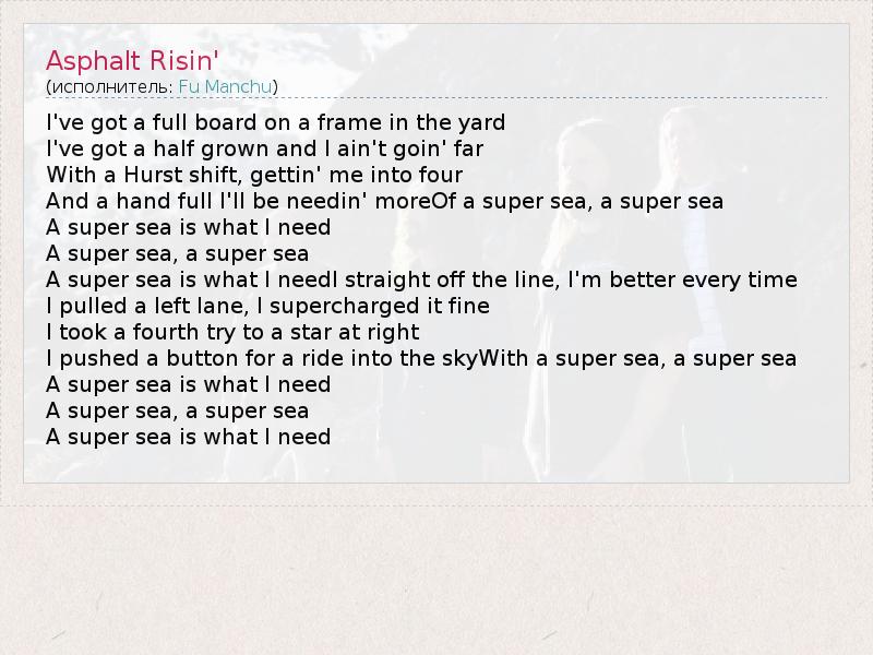 And a hand full I'll be needin' moreOf a super sea, a super sea