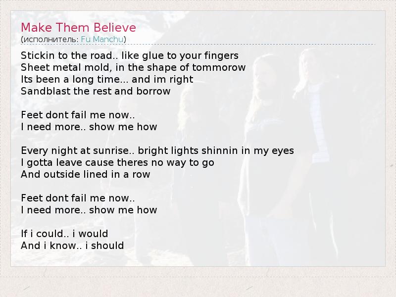 А как ты думаешь, о чем песня "Make Them Believe" ?