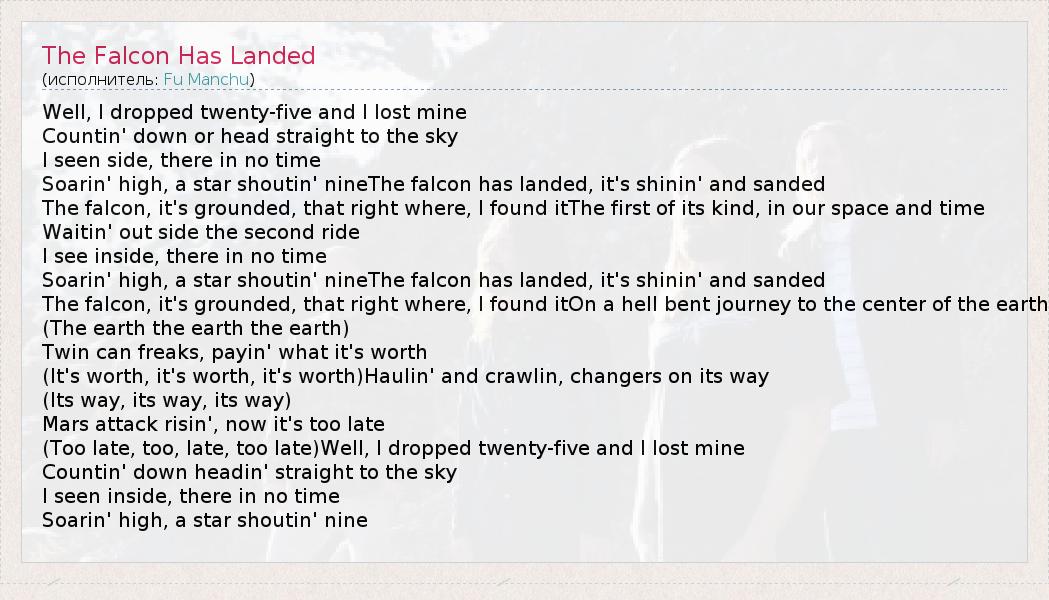 А как ты думаешь, о чем песня "The Falcon Has Landed" ?