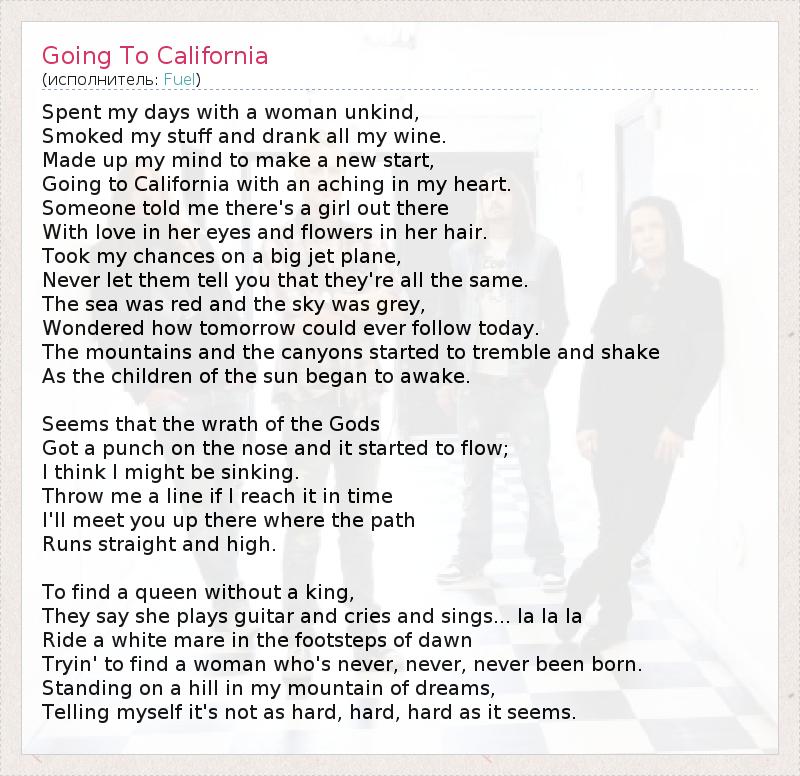 А как ты думаешь, о чем песня "Going To California" ?