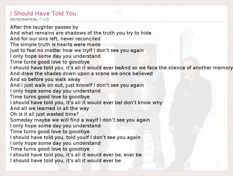 ГлавнаяИсполнителиFuelI Should Have Told You