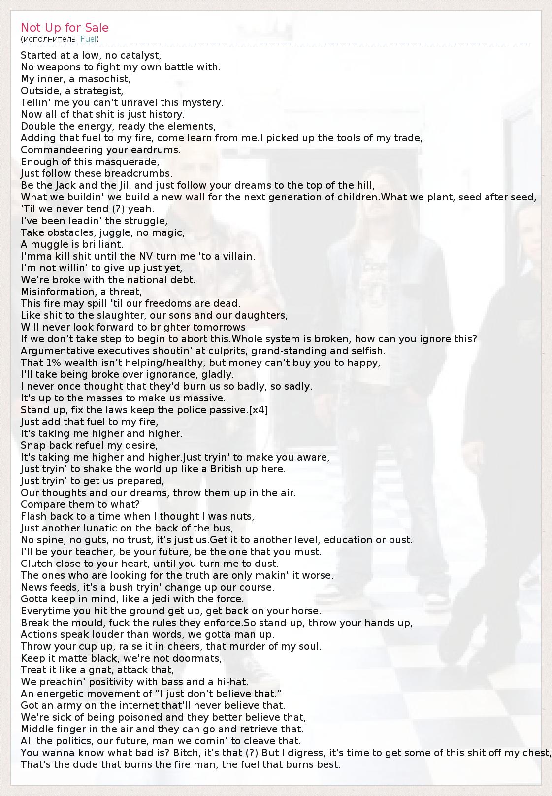 А как ты думаешь, о чем песня "Not Up for Sale" ?