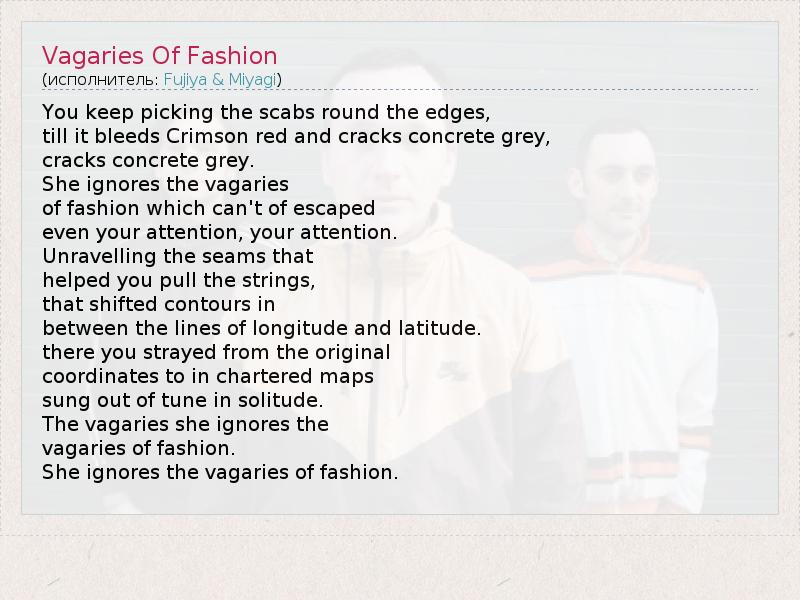 А как ты думаешь, о чем песня "Vagaries Of Fashion" ?