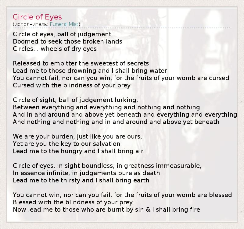 А как ты думаешь, о чем песня "Circle of Eyes" ?