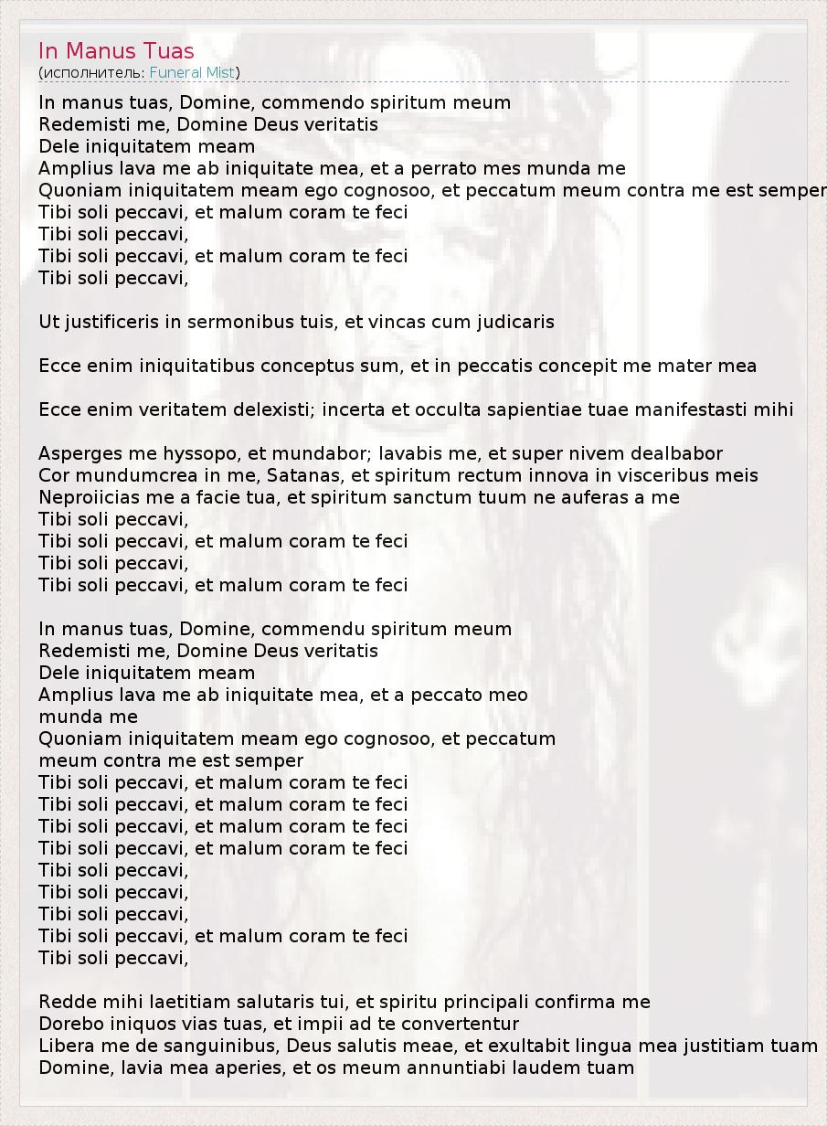 А как ты думаешь, о чем песня "In Manus Tuas" ?