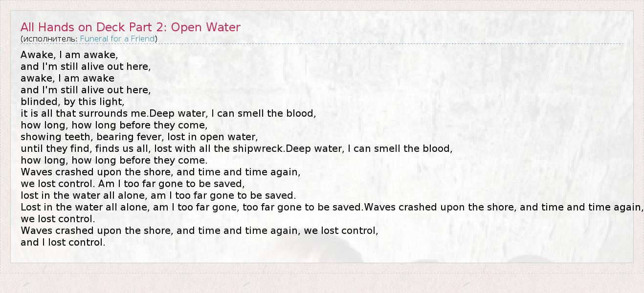 ГлавнаяИсполнителиFuneral for a FriendAll Hands on Deck Part 2: Open Water