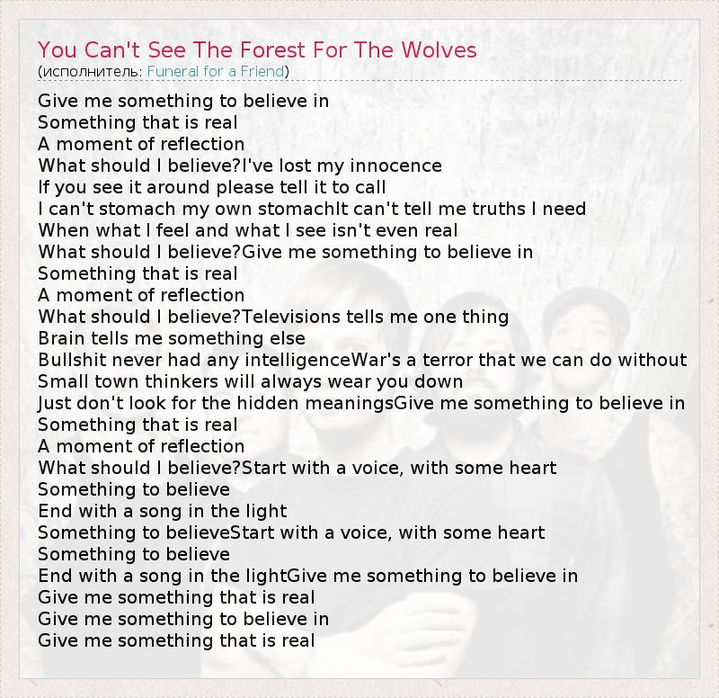 А как ты думаешь, о чем песня "You Can't See The Forest For The Wolves" ?
