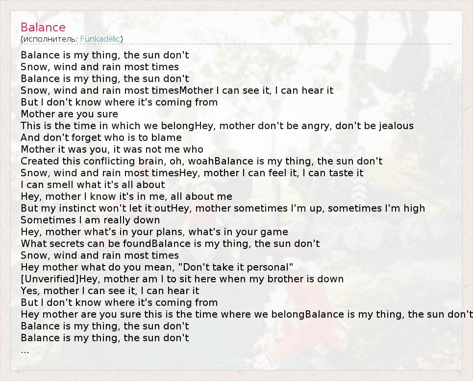 Hey mother are you sure this is the time where we belongBalance is my thing, the sun don't