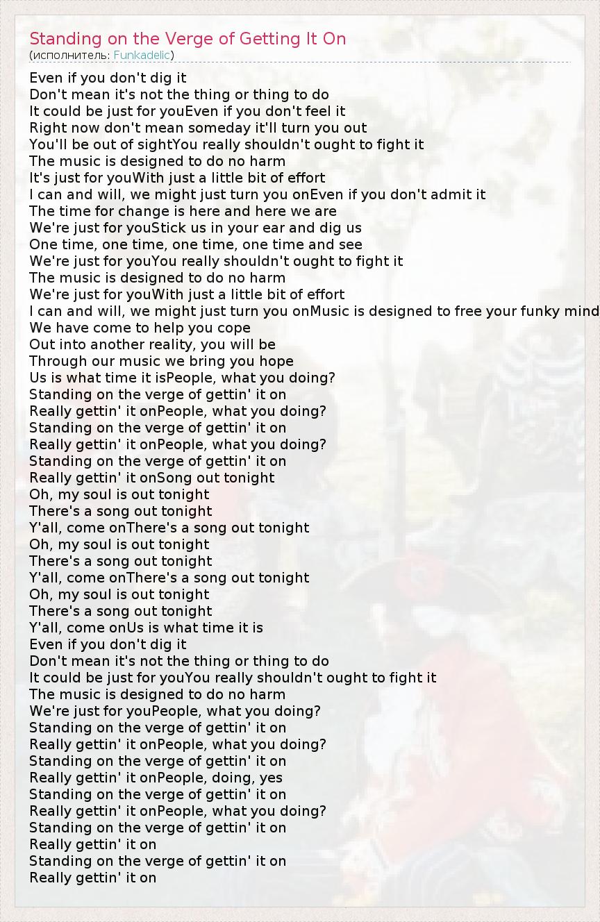 А как ты думаешь, о чем песня "Standing on the Verge of Getting It On" ?