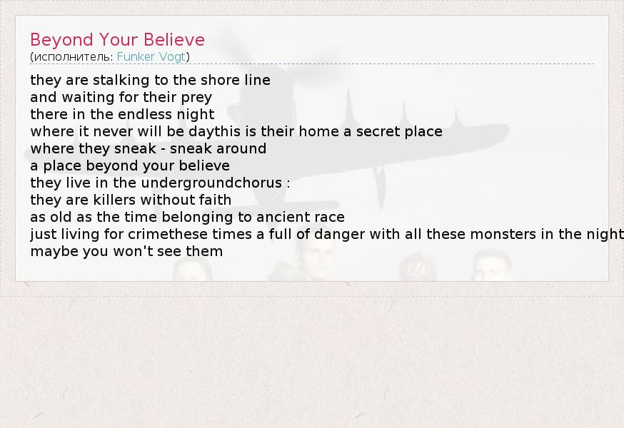 А как ты думаешь, о чем песня "Beyond Your Believe" ?