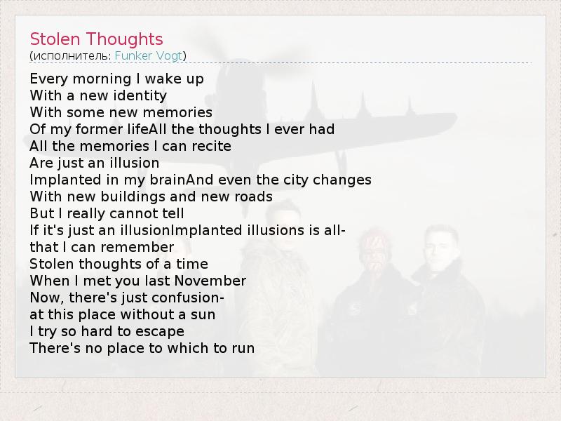 А как ты думаешь, о чем песня "Stolen Thoughts" ?