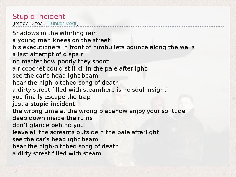 А как ты думаешь, о чем песня "Stupid Incident" ?