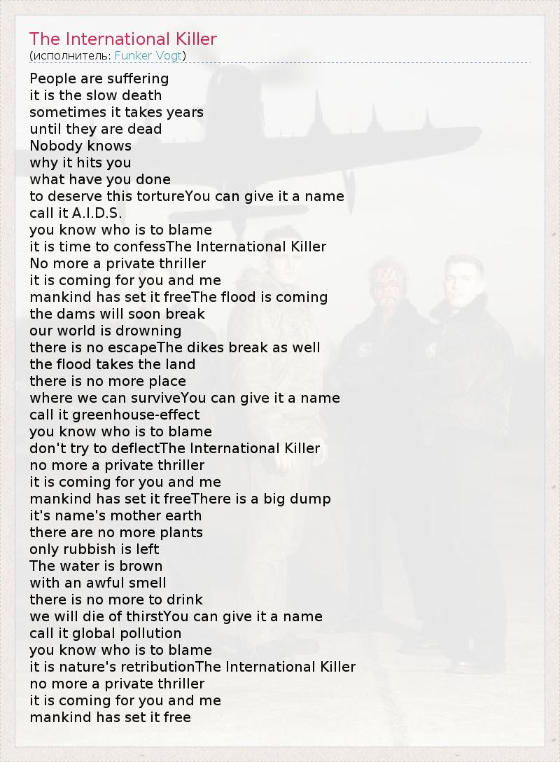 ГлавнаяИсполнителиFunker VogtThe International Killer