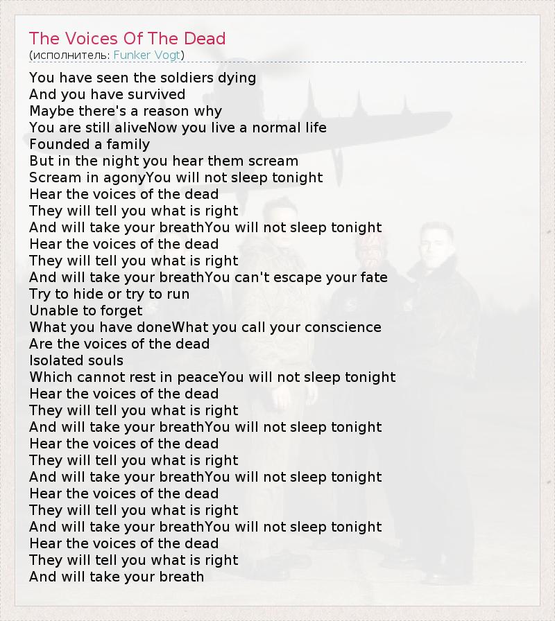 А как ты думаешь, о чем песня "The Voices Of The Dead" ?