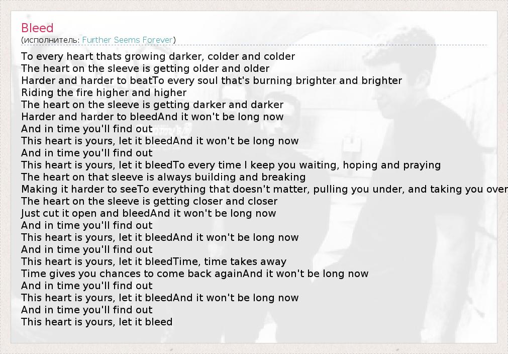 This heart is yours, let it bleedTo every time I keep you waiting, hoping and praying
