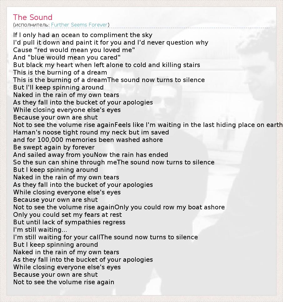 Not to see the volume rise againFeels like I'm waiting in the last hiding place on earth
