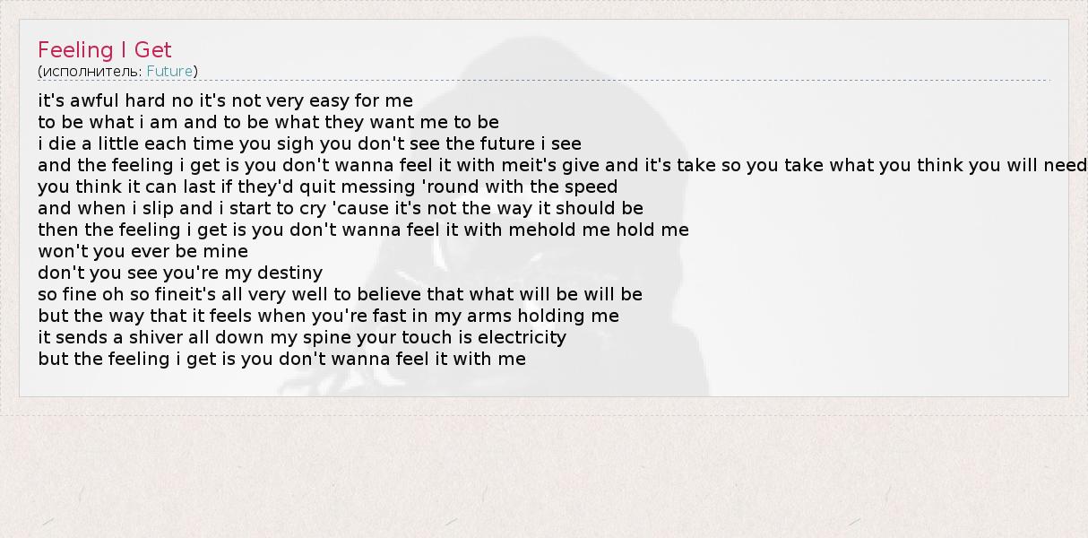 А как ты думаешь, о чем песня "Feeling I Get" ?