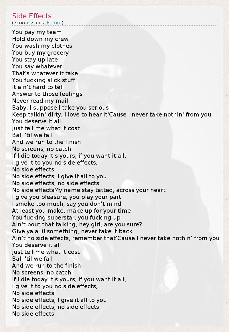 Ain't no side effects, remember that'Cause I never take nothin' from you