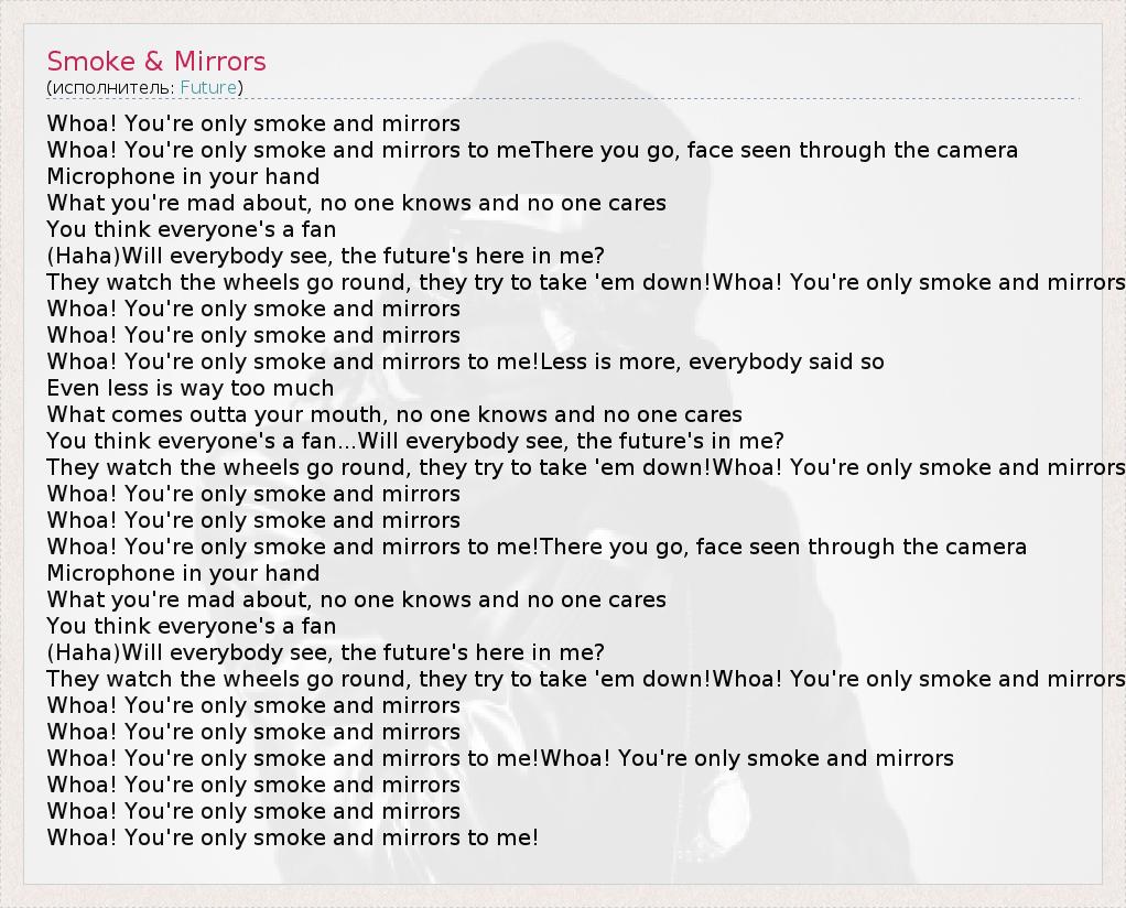 А как ты думаешь, о чем песня "Smoke & Mirrors" ?