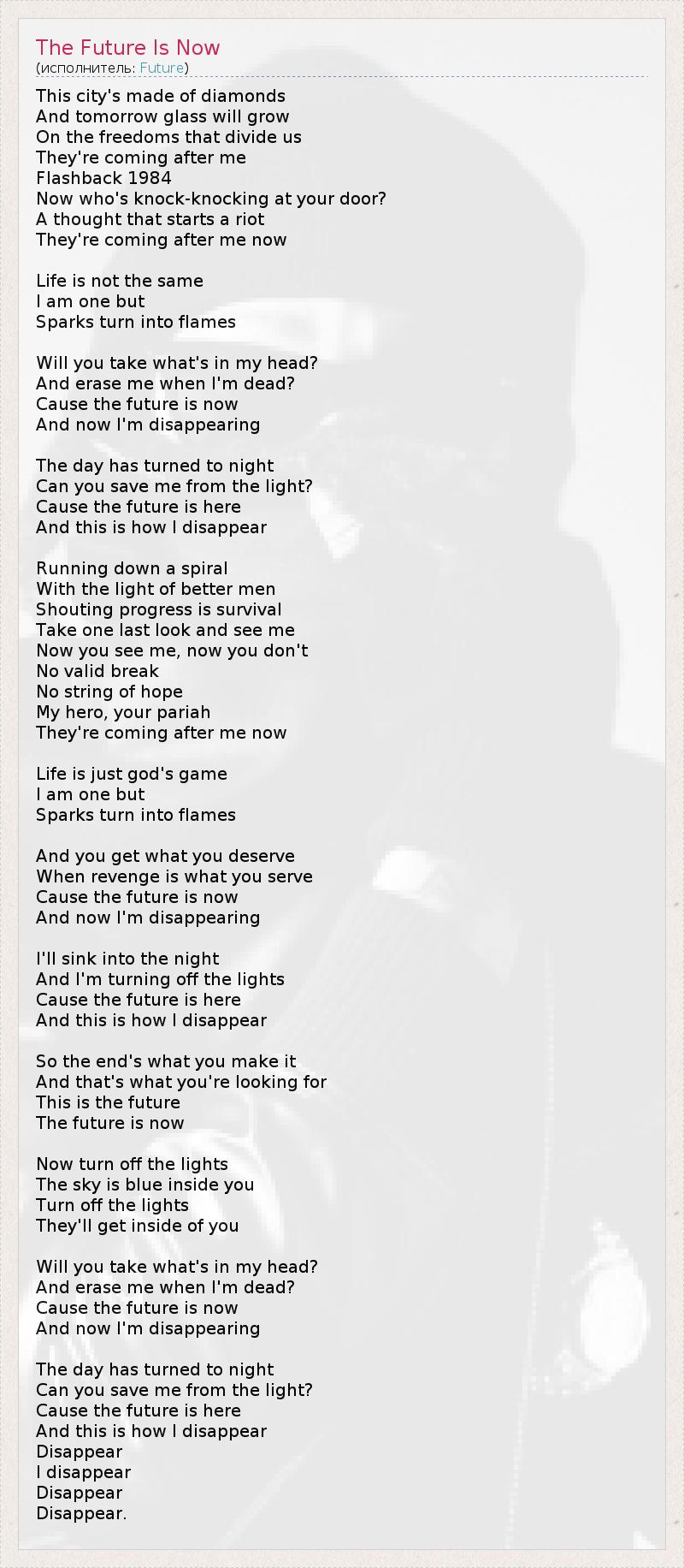 А как ты думаешь, о чем песня "The Future Is Now" ?