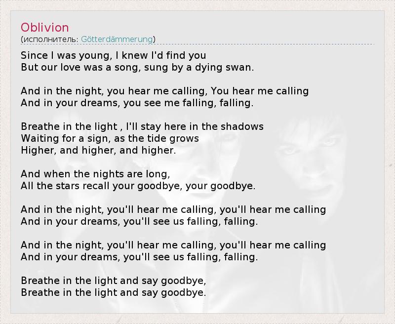 А как ты думаешь, о чем песня "Oblivion" ?