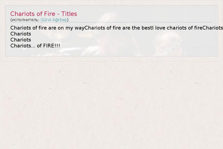 Chariots of fire are on my wayChariots of fire are the bestI love chariots of fireChariots