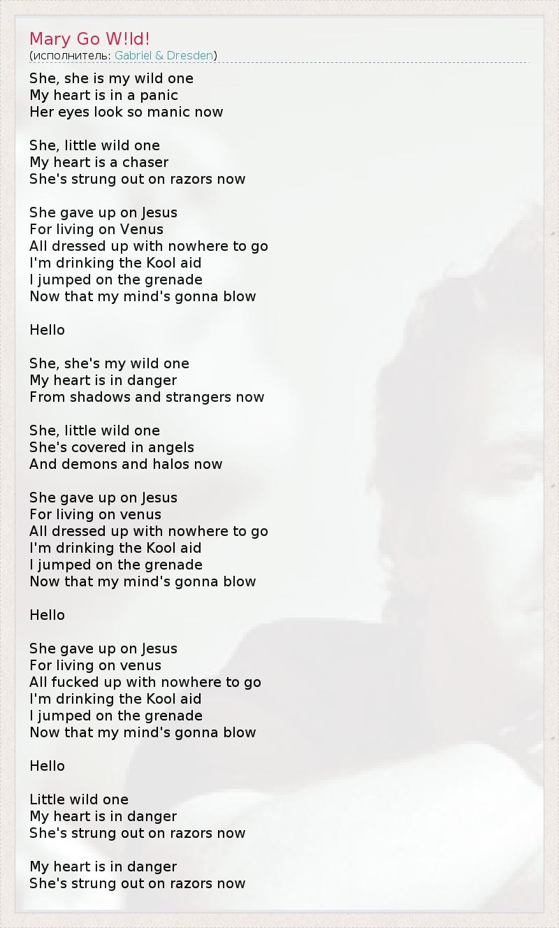 А как ты думаешь, о чем песня "Mary Go W!ld!" ?