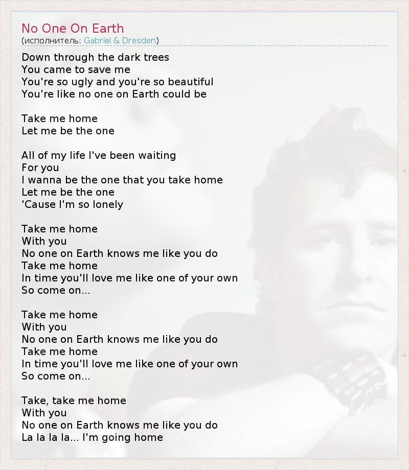 А как ты думаешь, о чем песня "No One On Earth" ?