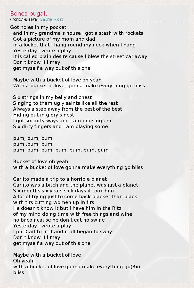 А как ты думаешь, о чем песня "Bones bugalu" ?
