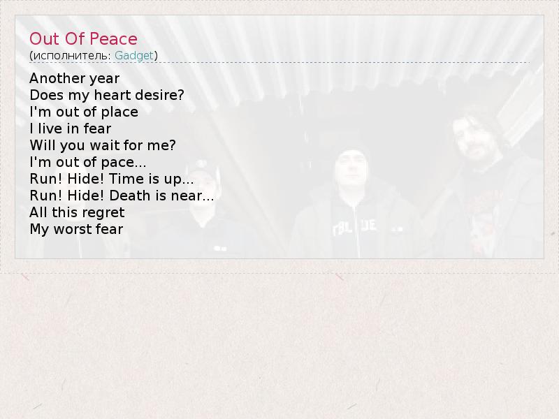 А как ты думаешь, о чем песня "Out Of Peace" ?