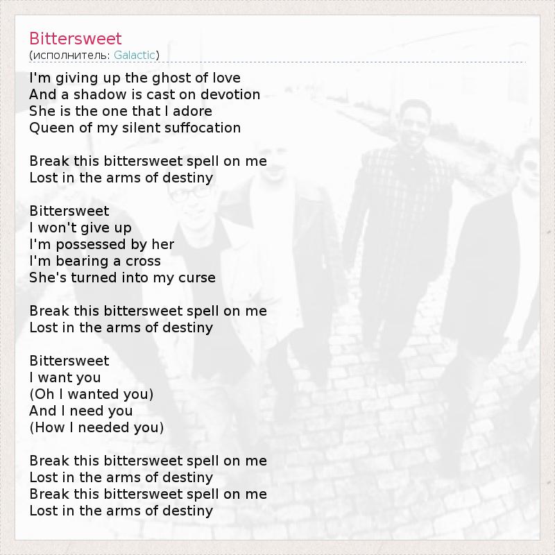 А как ты думаешь, о чем песня "Bittersweet" ?