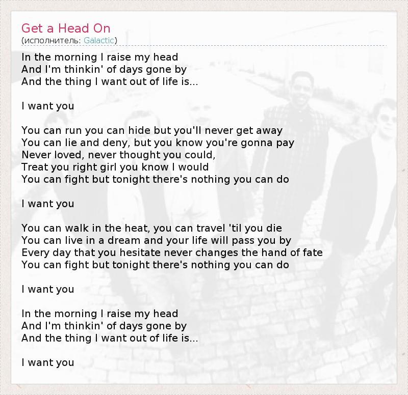 А как ты думаешь, о чем песня "Get a Head On" ?
