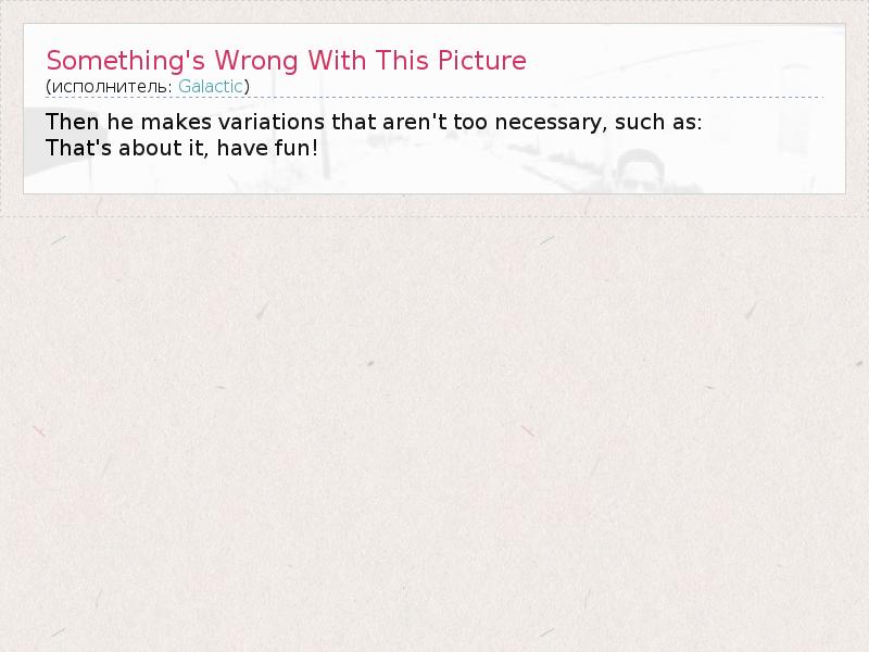 А как ты думаешь, о чем песня "Something's Wrong With This Picture" ?