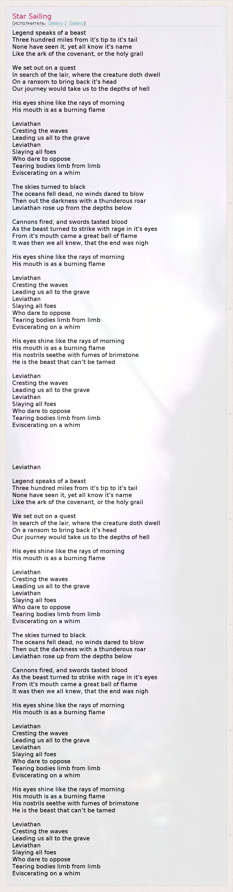 А как ты думаешь, о чем песня "Star Sailing" ?