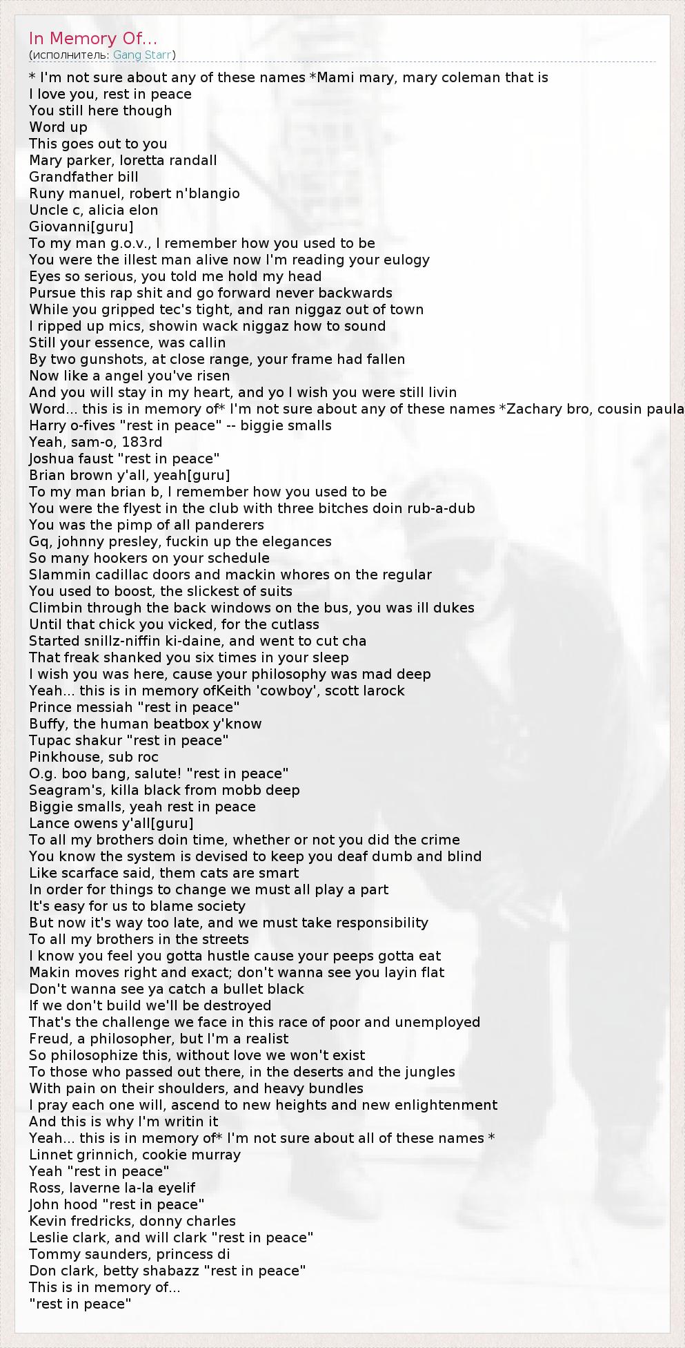 Yeah... this is in memory of* I'm not sure about all of these names *