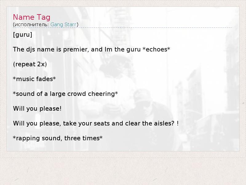 А как ты думаешь, о чем песня "Name Tag" ?