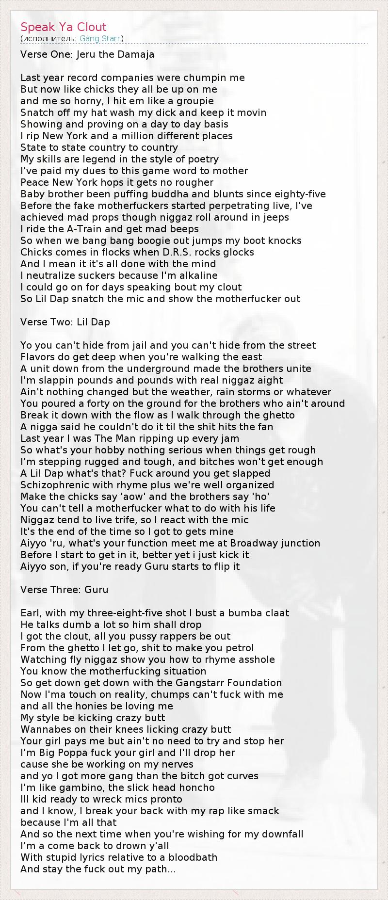А как ты думаешь, о чем песня "Speak Ya Clout" ?