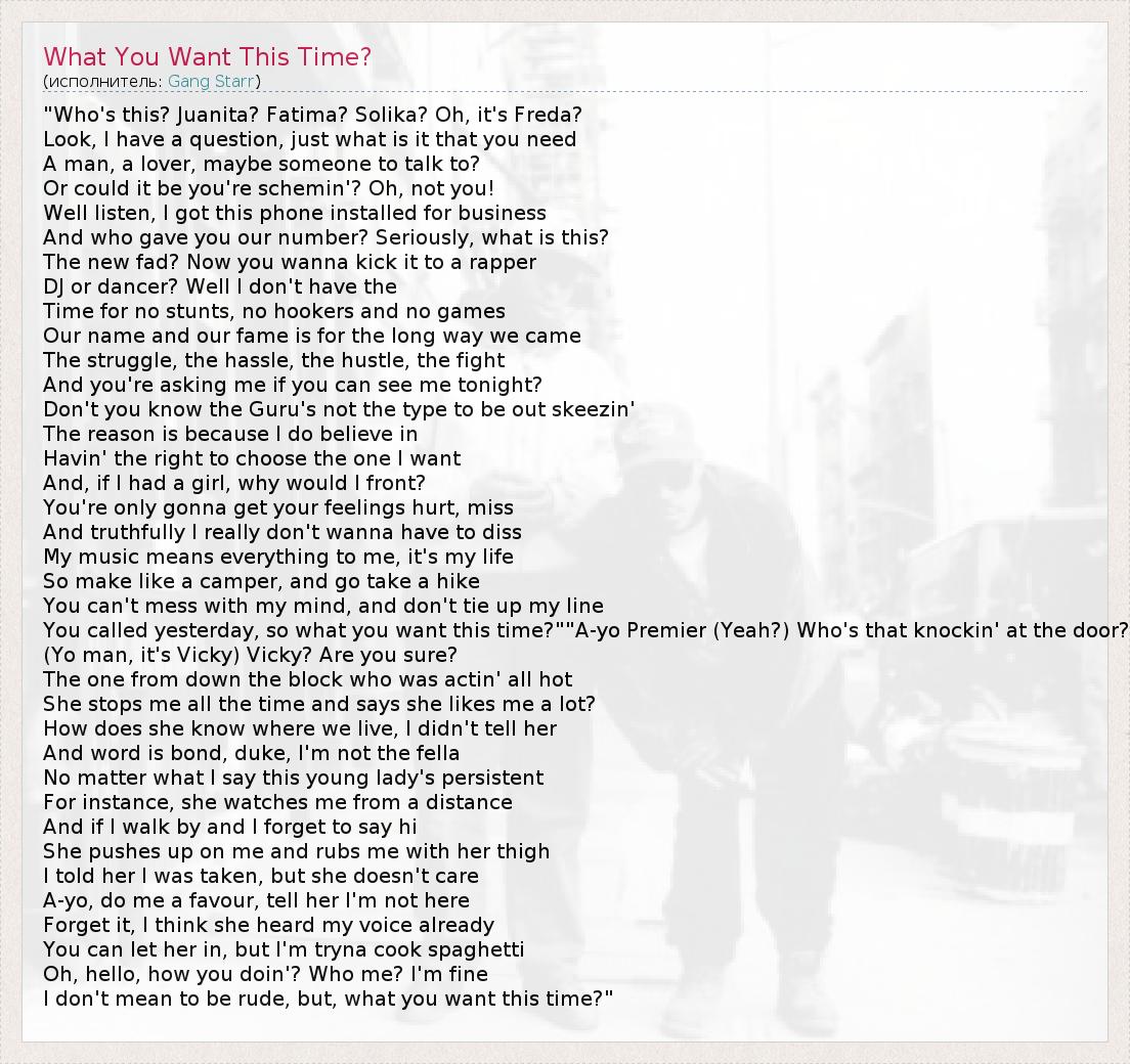 ГлавнаяИсполнителиGang StarrWhat You Want This Time?