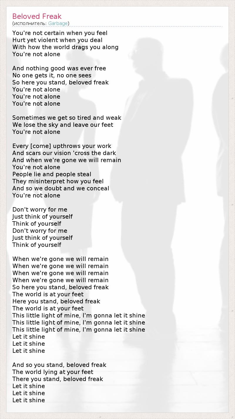 А как ты думаешь, о чем песня "Beloved Freak" ?
