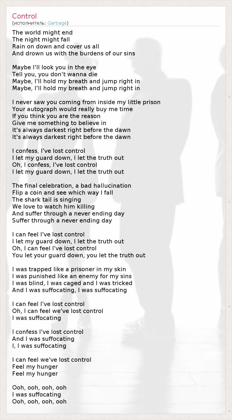Первая пластинка, записанная на собственном лейбле Garbage в Лос-Анджелесе, Not Your Kind Of People не поразит новизной и тем более не впечатлит обилием хитов. Сила этого альбома в целостности и качестве материала, чего можно было ожидать, зная, кто берется за его исполнение. Ударник Бутч Виг, давно и успешно занимающий продюсерское кресло, обеспечил релизу классное современное звучание и тот стиль, с которого Garbage и начинали – головокружительное сочетание агрессивных гитар и пульсирующей электроники. Ширли Мэнсон не выдает шедевров вокального искусства, но на каждом треке работает на изначально высоком уровне и по-прежнему заряжена остротой, прямотой и жесткостью. Automatic System Habit – уверенное начало с активным призывом бежать на танцпол. Big Bright World показывает совсем другую сторону группы – умелое использование синтезаторов для создания цепляющей мелодии. Это значит, как всегда, Garbage намерены на протяжении альбома менять темп и акценты, создавая максимально пестрое музыкальное полотно. На третьем месте в трек-листе оказывается трек Blood For Poppies, который уже сейчас можно занести в золотой фонд Garbage благодаря абсолютно хитовому припеву и глупой лирике, которая только придает песне еще больше колорита.