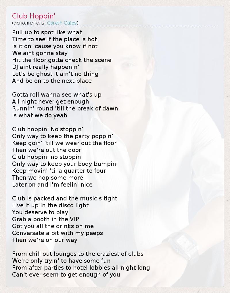 А как ты думаешь, о чем песня "Club Hoppin'" ?